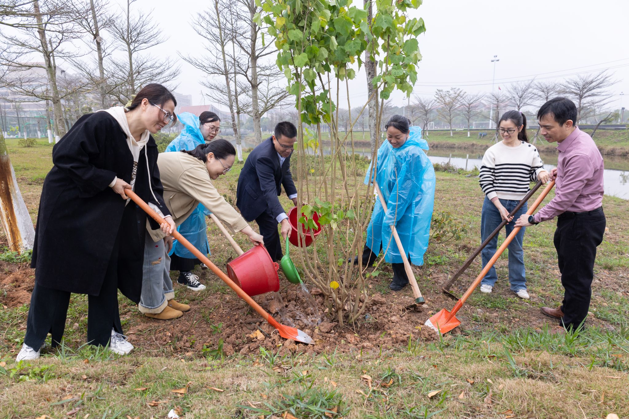 党建引领添新绿,支部共建护生态。3月12日上午,正值第47个中国植树节,组织宣传网络党支部组织全体党员前往校园东区篮球场北侧水系沿线开展“植树添绿 党员先行”主题党日活动,以实际行动力促生态文明建设,为美丽校园建设注入绿色动能。