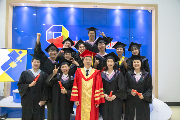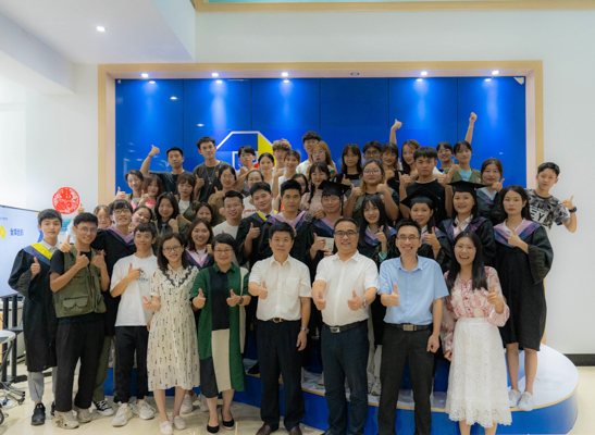 “全媒成立的那一年正是我们学校向筹建大学开始迈出关键性步伐的时候,‘绿马甲’一直伴随在我们身边,全媒与湾大也是共同成长起来的。”韩峻峰书记深受全媒情谊的感动,回望过去,他对全媒体中心在学校宣传工作中发挥的作用和取得的成绩给予充分肯定。他寄语全媒毕业生们:“希望将来无论你们去到哪里,都能把在湾大学到的‘自立、自信、自强’精神传承下去,带到工作岗位上去,把对湾大、对全媒的爱传承下去,我相信大家一定会收获满满!”他亲手给2021届全媒毕业生们送上心意满满的毕业纪念品,并为他们一一拨穗,与他们合影留念。