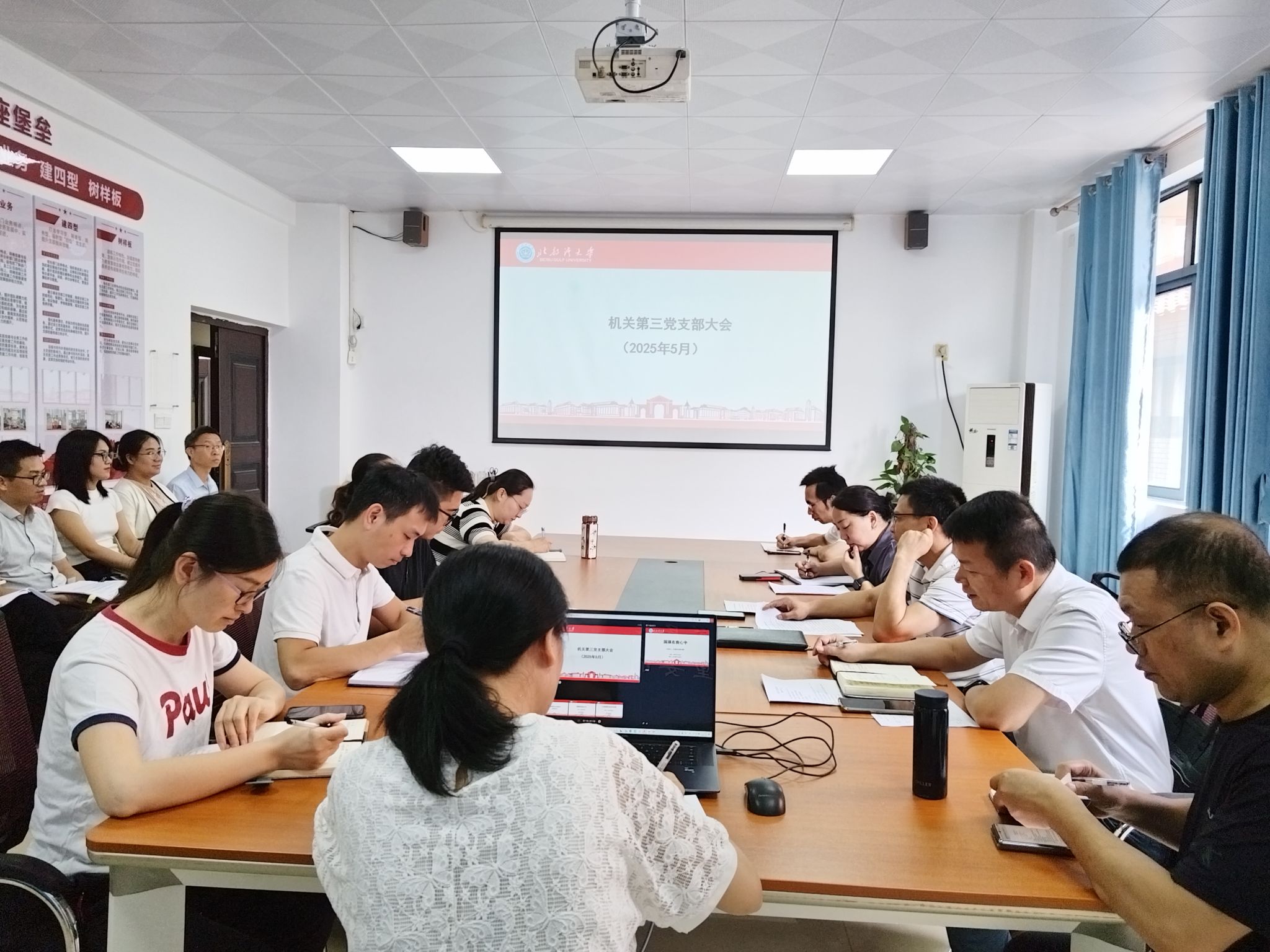 5月30日上午,机关第三党支部在办公楼244召开支部大会,开展支部政治理论学习,会议由支部书记裴以明主持,支部全体党员参加会议。