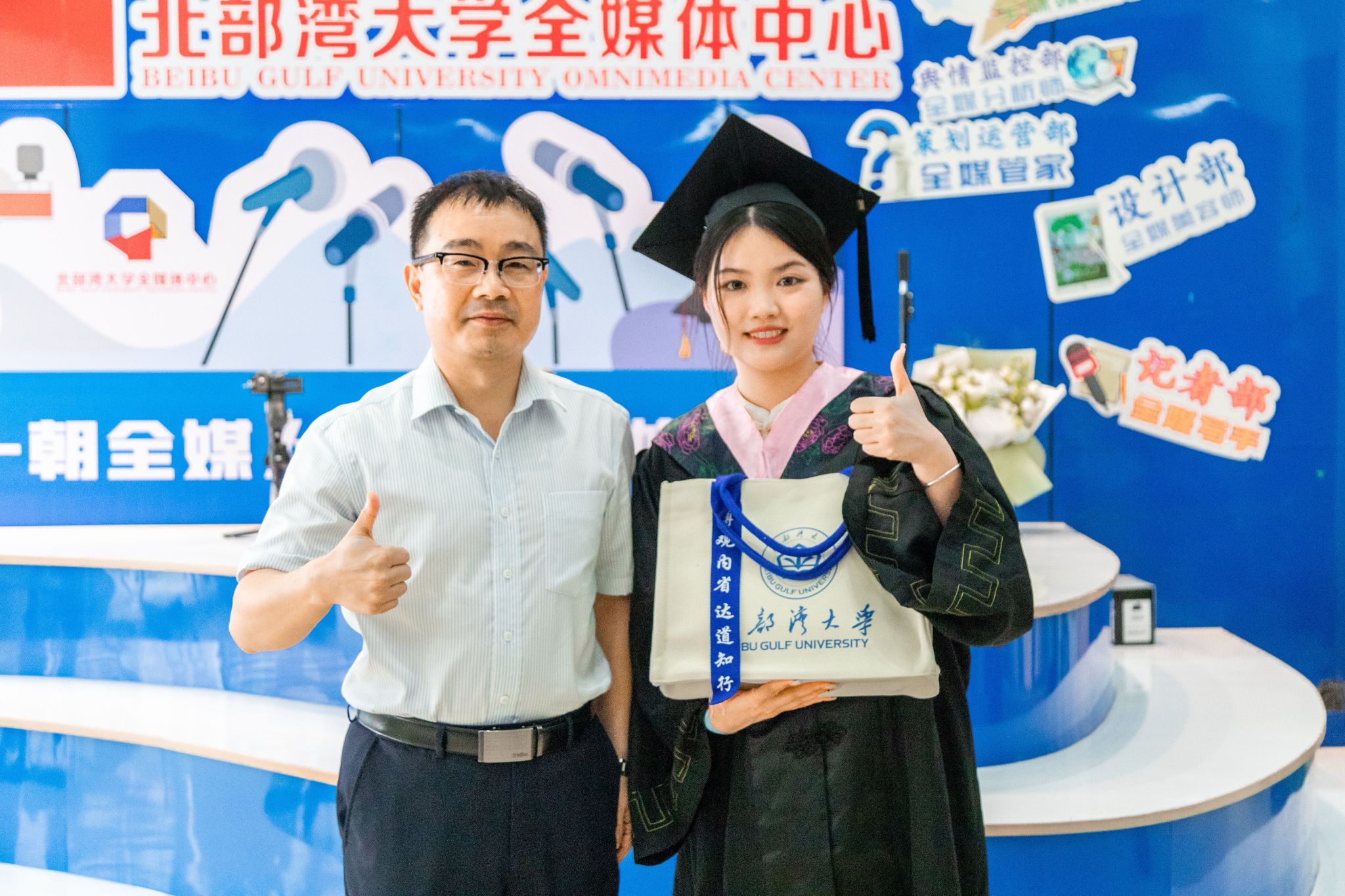 6月26日下午,徐华蕊来到大学生活动中心207湾大全媒工作室,寄语鼓励2024届全媒毕业生们。