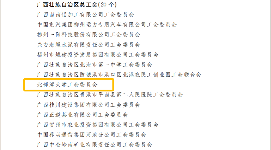 近日,从《中华全国总工会关于表彰全国模范职工之家、全国模范职工小家、全国优秀工会工作者的决定》获悉,北部湾大学工会委员会荣获“全国模范职工之家”荣誉称号,是全区唯一获此荣誉的高校工会。